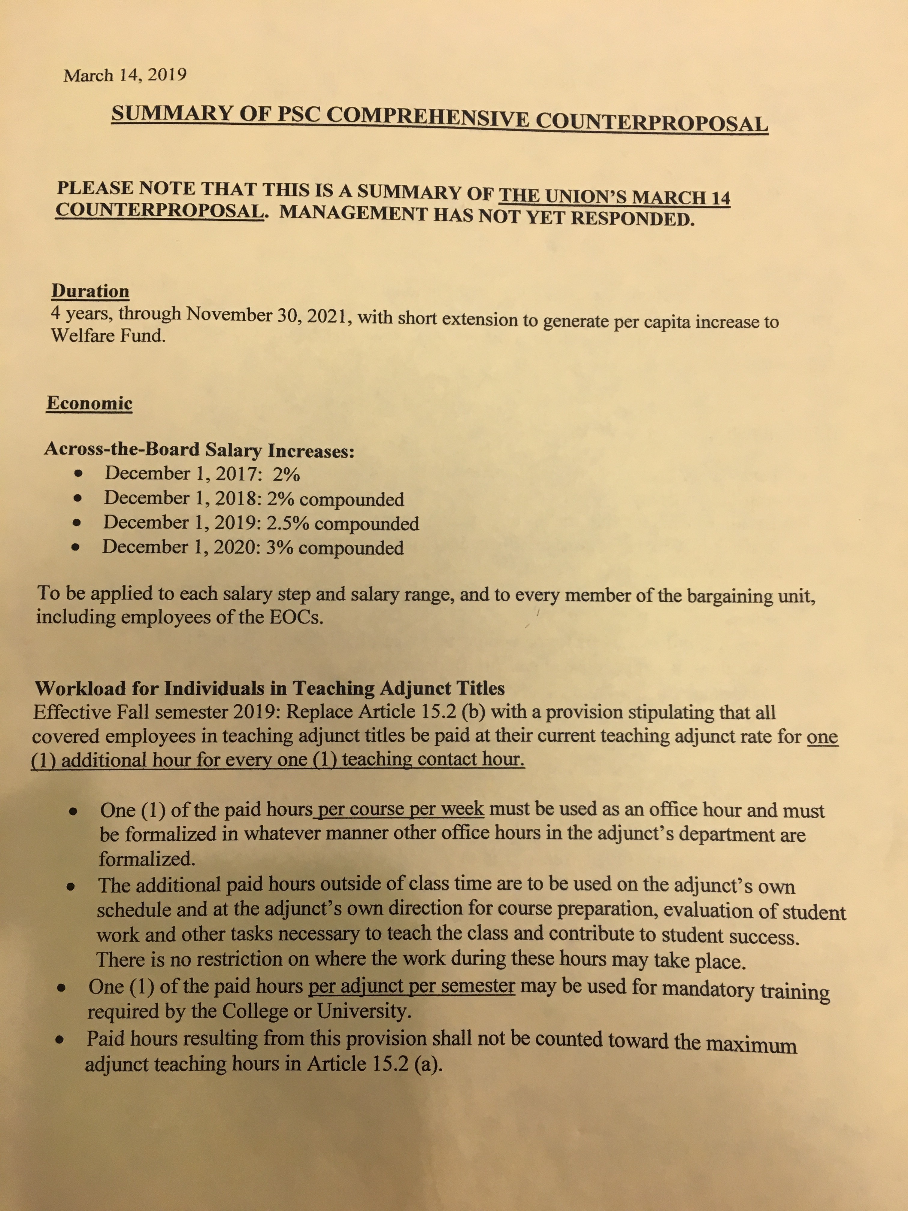 Welcome back! As the fall semester begins, we wanted to reach out to you with some updates about the current contract negotiations and to encourage you to join us in the struggle to win a good contract for all PSC members that includes a minimum $7K per three-credit course for adjunct faculty.