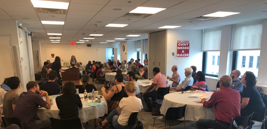 As many of you may know, our contract expired nearly two years ago. Our union’s elected bargaining team has since failed to secure any increase in funding from either the CIty or the State, and current funding levels do not even keep pace with inflation—much less the cost of $7K per course for adjuncts. So now our union is stuck fighting for crumbs from an ever-shrinking pie to bring our wages closer to parity with full-time lecturers.